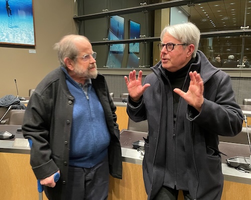Michel Davy de Virville, vice-président de TZCLD et Claude Baqué, réalisateur d’Utopie zéro chômeur à l’issue de la projection